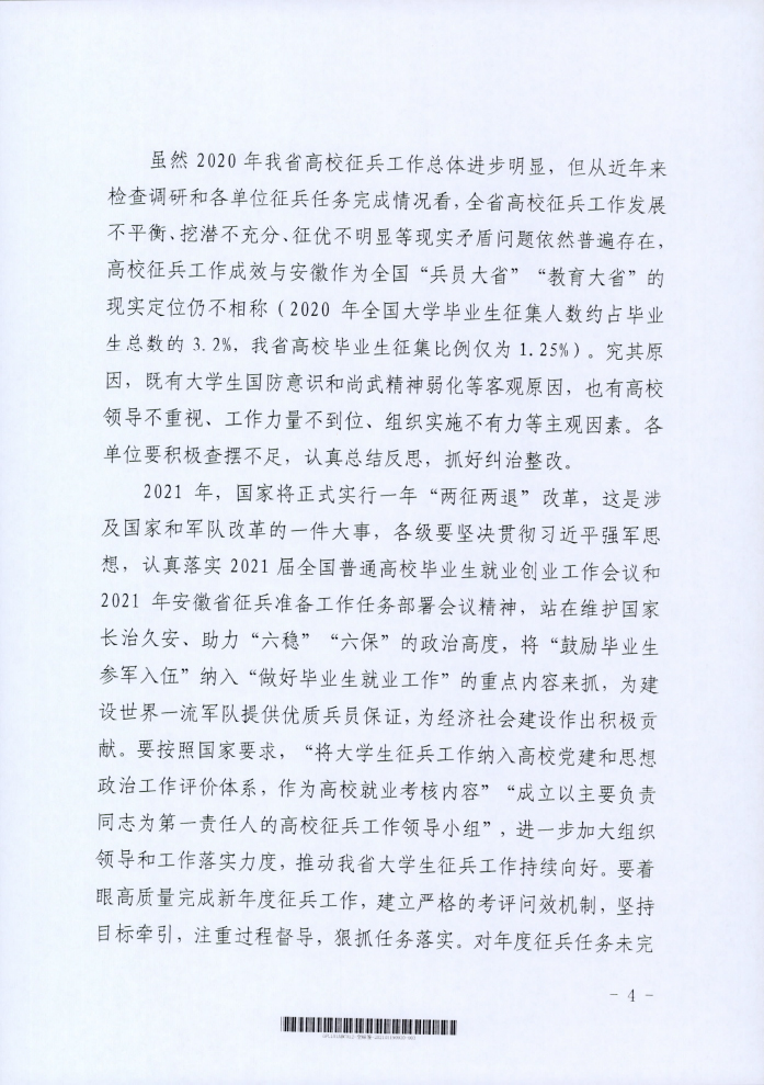 近期,省征兵办公室联合省教育厅,对全省高校征兵任务完成了情况进行了梳理汇总。经统计核实,2020年省内赋予征集任务的116所高校,共征集大学生6899人,较上年增加1769人;征集大学毕业生1870人,较上年增加923人,实现了大学生、大学毕业生征集“双增长”,为全省征兵工作做出了突出贡献。