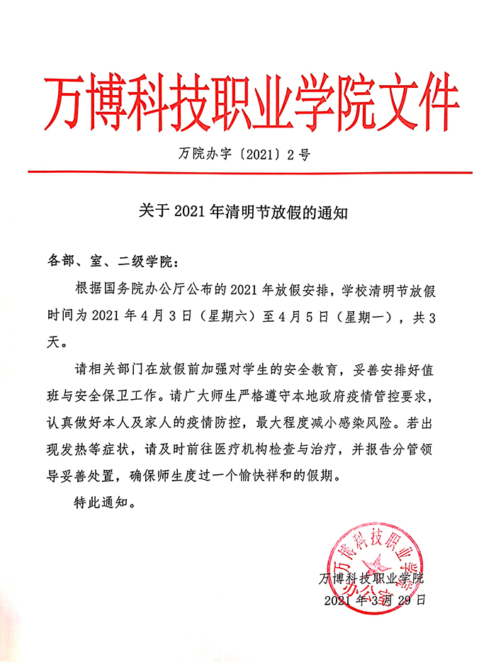 关于2021年清明节放假的通知