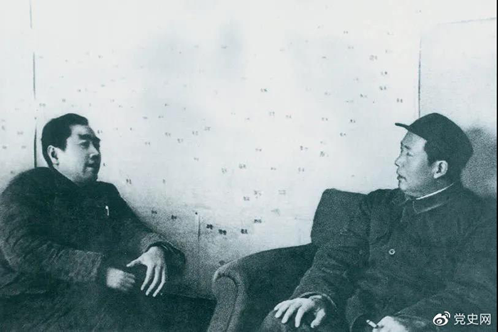 图为毛泽东和周恩来在河北西柏坡。