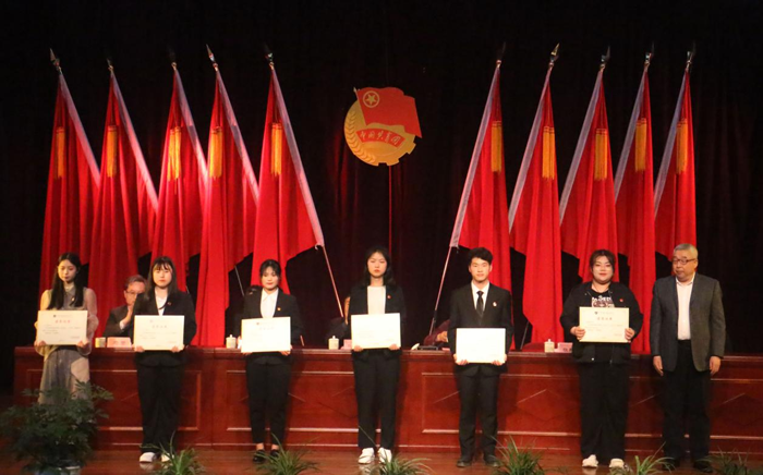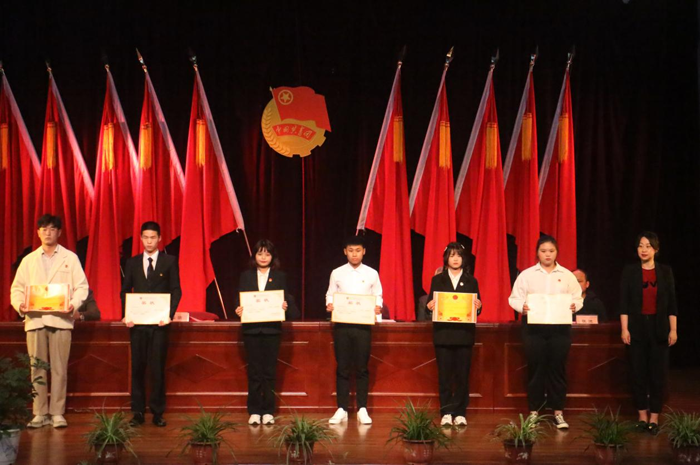 大会在庄严的国歌声中正式开始。在此次大会中,副校长马赞宣读团学系统表彰决定,并由校领导分别为获奖集体、个人颁发证书奖状。