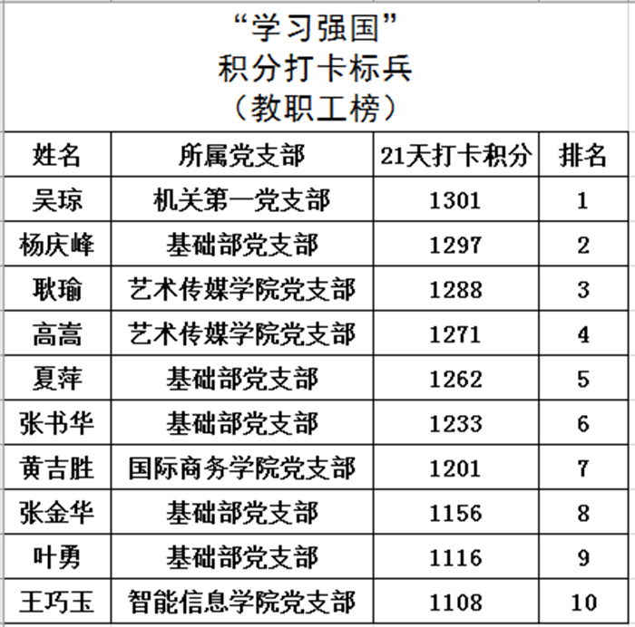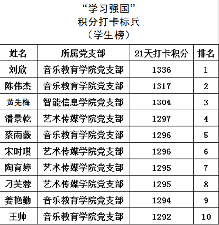 原来,从4月27日起至5月17日,校党委号召各党支部“学习强国”平台的注册学员,在此期间坚持学习,通过“学习强国”21天积分赛,争当学史悟思的标兵、增信崇德的标兵、为民办事的标兵、勇开新局的标兵,以实际行动和优异成绩庆祝建党100周年。