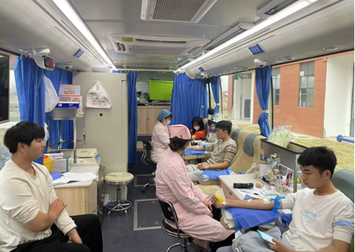 在献血现场,志愿者们耐心地为前来咨询献血的同学讲解如何参与无偿献血活动,并一一引导献血的同学出示安康码、正确填写健康信息等各项流程;医护工作人员也认真地为同学们做好征询、血液初筛检测等准备工作,与此同时,医务人员还温暖地提示同学们确认身体状况,并提醒学生切勿在空腹、感冒或者熬夜等情况献血,要在保证自身身体健康的前提下,才可为他人奉献爱心。