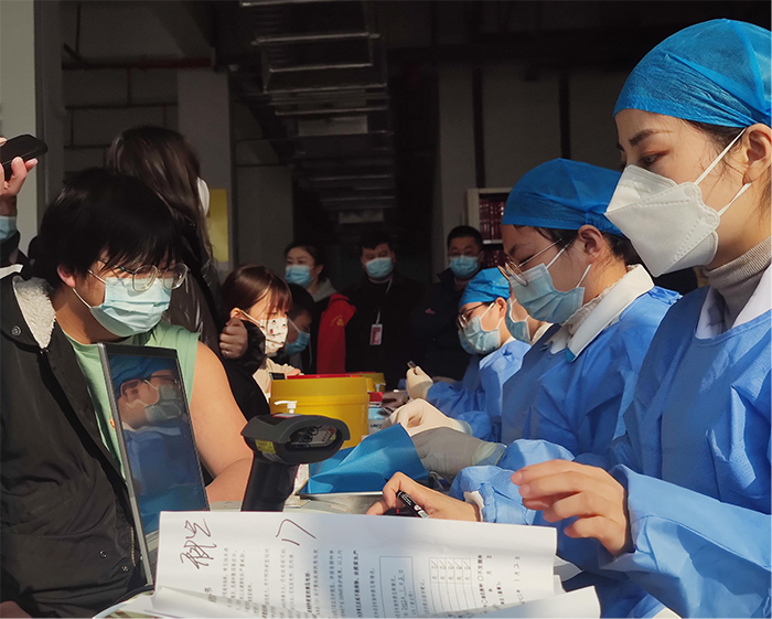 此次接种对象为完成新冠疫苗2剂次接种满6个月以上的师生,针对师生接种科兴、生物不同类型疫苗,医护工作者采用同种技术路线的疫苗进行加强免疫接种。学校现场分为等候区、取药处、接种处和留观区四个区域,并设置了6个接种点,确保疫苗接种工作安全、规范、有序、高效。