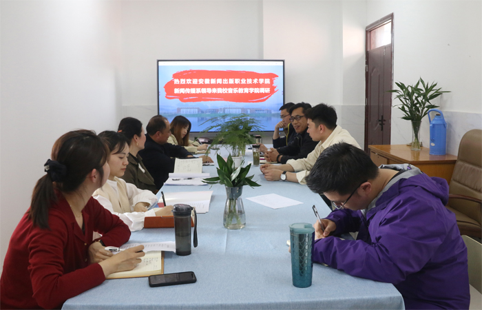 3月10日下午,安徽新闻出版职业技术学院新闻传播系主任叶海精、副主任吴媛媛等一行6人莅临BEAT365英国官网音乐教育学院进行调研,BEAT365音乐教育学院副院长沈春雷、教学助理水九清、音乐教研室主任吴乾康在音乐教育学院会议室热情接待了来访的同行教师并开展座谈会。