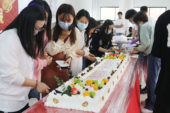 美食节活动在校领导许华云和煜泉餐饮负责人汪令共同切开蛋糕的那一刻拉开了帷幕。烹饪现场热火朝天,“麻辣小龙虾、柠檬鸡爪、地锅鸡、酸菜鱼……”一道道美食让人垂涎欲滴;糕点师傅们现场制作蛋糕甜点,“超长的蛋糕、精致的甜品、鲜美的水果……”让“美食家们”驻足流连,早早地将美食餐桌围得严严实实。活动期间还设置了抽奖环节,让大家在品尝美食的过程中还能感受到惊喜和快乐,参加抽奖的学生早早的排起了长队,整个活动现场热情高涨,琳琅满目的美食让师生们齿颊留香、回味无穷。
