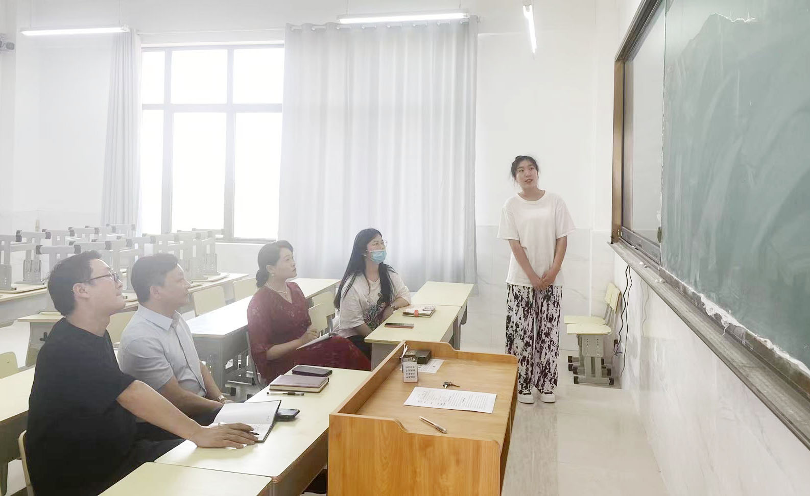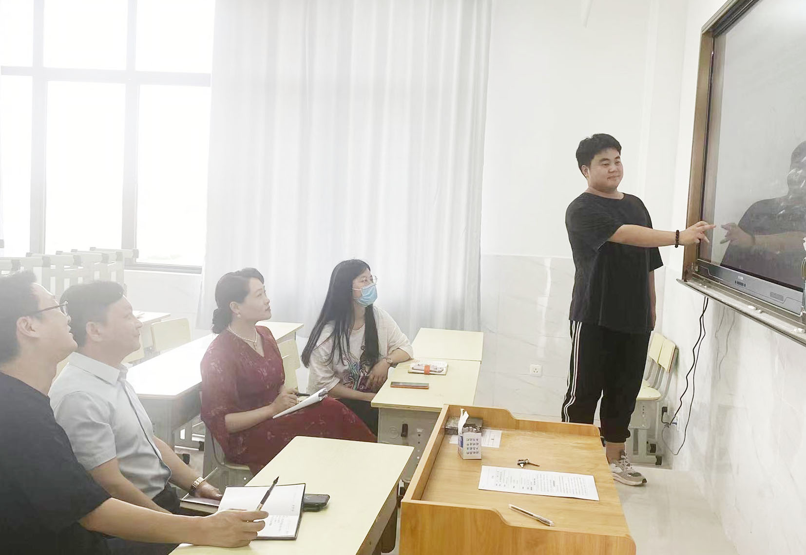 比赛现场,参赛选手们有的目光如炬,期待着试讲的开始;有的面色红晕,露出小小的紧张。试讲中,选手们通过对课件的讲述,渐入佳境,并在试讲过程中结合自身专业特点和时事热点,富有激情地讲述了由自己及团队设计的思政课程。在试讲结束之后,指导老师依次对参赛学生的教姿教态、教学教案、仪容仪表等方面提了建议。