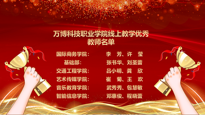 会上,各教学单位负责人推荐了线上教学优秀教师。张进宣布了线上教学优秀教师、优秀工作者和特别奉献奖的获奖名单。他对教师们在线上教学阶段的表现予以肯定,要求教师们提高政治站位,希冀教师们对学生多一分耐心、多一分关爱,对特殊时期的学校多一分理解、多一分包容。