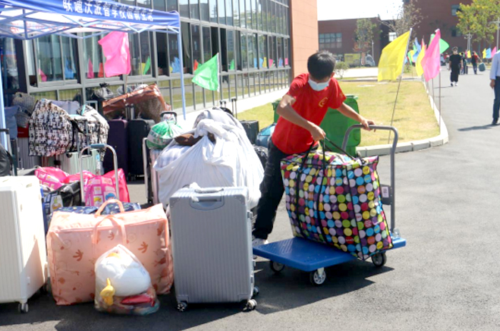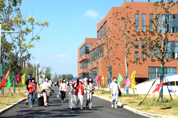 秋澄景清,碧空如洗。9月16日,金色的阳光洒在路面,泛着点点星光,新生们迎着和煦的微风,从各地奔赴而来,齐聚万博,开启大学生活“新”旅程。