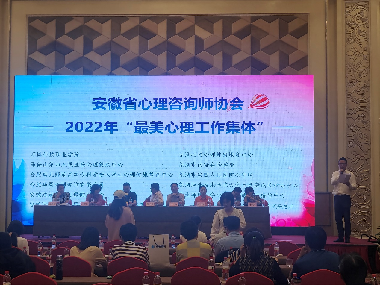 大会对有关单位和个人进行了表彰。BEAT365被安徽省心理咨询师协会授予“2022年度最美心理工作集体”,朱彩娣老师被授予“2022年度最美心理科技工作者”。
