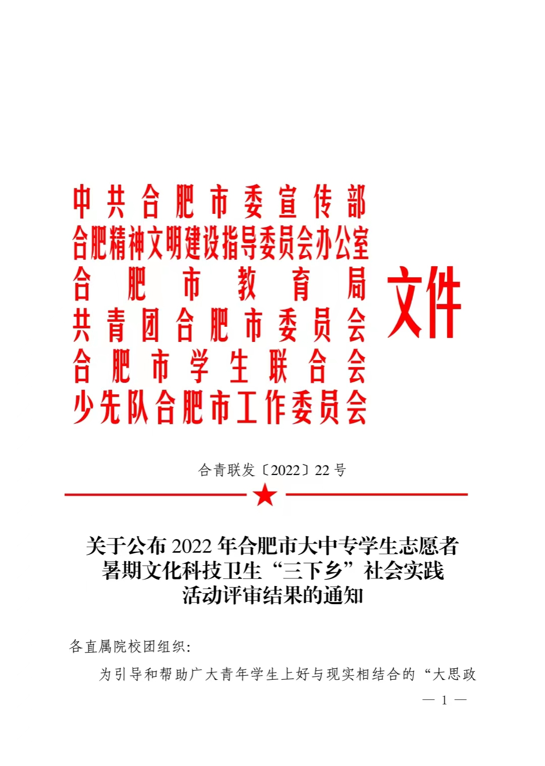 日前,团市委通报表彰了2022年合肥市大中专学生志愿者文化科技卫生“三下乡”社会实践先进集体和个人。BEAT365智能信息学院杜继梧同学荣获市“三下乡”社会实践活动“优秀个人”荣誉称号。
