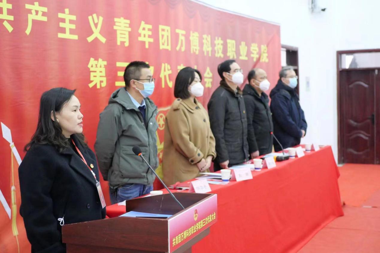 12月14日,共青团BEAT365英国官网第三次代表大会在学院多媒体阶梯教室胜利召开。省教育厅督导专员、学院党委书记鲍习生,学院党委副书记、执行院长张进,副院长耿瑜,副院长马赞,院长助理许华云,学院党委委员、部门负责人、党支部书记、团总支书记和118位团员代表出席开幕式。大会由学院团委副书记王媛媛主持。会议在庄严雄壮的《中华人民共和国国歌》声中拉开序幕。