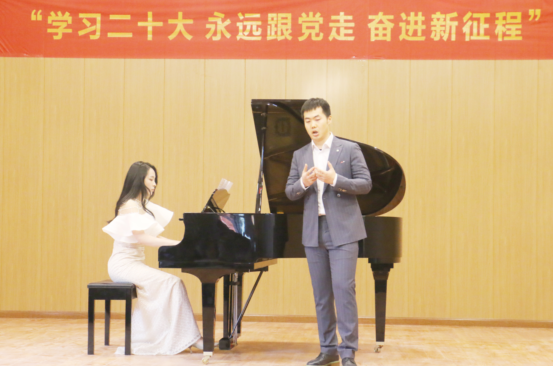 本场音乐会,音乐表演专业的部分青年教师纷纷登台献艺,师生同台,在用歌声、琴声表达了对祖国繁荣昌盛的赞颂的同时,也充分展现了音乐教育学院师生昂扬向上的青春风貌,进一步坚定了师生坚持专业理想,坚持理论与舞台艺术实践相结合,知行合一,保持强烈的求知欲、敏锐的洞察力和旺盛的创造力,探求新知、追求真理,用实际行动践行党的二十大精神,在实现中华民族伟大复兴的时代洪流中踔厉奋发,贡献自己的青春力量。