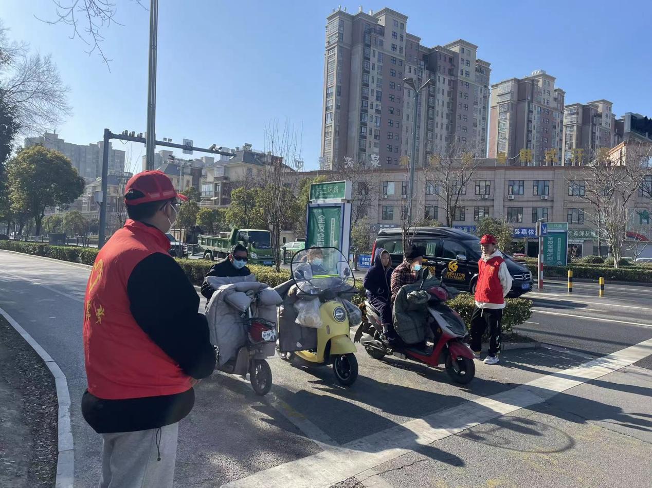 1月7日上午,“红心向党”实践队来到泗县北二环路与洋城湖路交叉口,积极劝阻行人闯红灯、骑车不带头盔、骑车逆行等不文明行为,引导行车人在划定区域内等红灯,遵守交通规则。路人们纷纷给队员们的表现点赞,队员们心里暖洋洋的,为家乡建设出一份青春力量的自豪感油然而生。