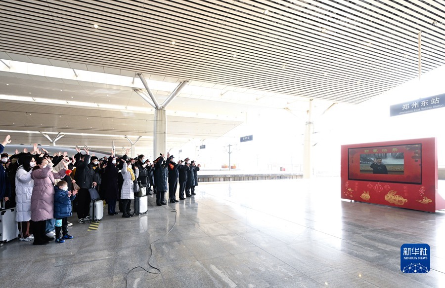 郑州东站是我国最大的高铁站之一,今年春运期间预计旅客发送量337万人。习近平通过视频连线看望慰问铁路客运干部职工。在东站一站台,郑州东站站长汇报车站春运总体情况。习近平又详细询问车站现在每天的客流量是多少?防疫措施落实得怎么样?春运治安采取了哪些措施?嘱咐他们精心组织调度,严守安全底线,确保广大旅客安全出行。月台上的旅客看见总书记,争相赶到镜头前,向总书记问好。习近平亲切询问他们是回家过年还是外出旅游,叮嘱他们注意旅途安全。习近平指出,春运是关系人民群众切身利益、关系经济发展和社会稳定的一件大事。今年春运是疫情防控进入新阶段后的第一个春运,客流量大幅回升。交通运输部门要坚决贯彻落实党中央要求,提升保通保畅能力,确保人民群众平安健康出行,确保重点物资运输畅通有序。要坚持底线思维,加强对极端恶劣天气的监测和预警,深入开展安全隐患排查治理,坚决遏制重特大安全事故发生。要加强对出行相对集中的务工流、学生流的服务引导,确保他们节前安全返乡、节后顺利返岗返校。要严格落实各项防控规定,最大限度降低交叉感染几率,保障旅客身体健康。习近平强调,长期以来,交通运输系统的干部职工埋头苦干,担当奉献,功不可没。春节期间,许多同志要坚守岗位。习近平代表党中央,向交通运输系统的广大干部职工致以新春的祝福,并祝广大旅客旅途顺利。