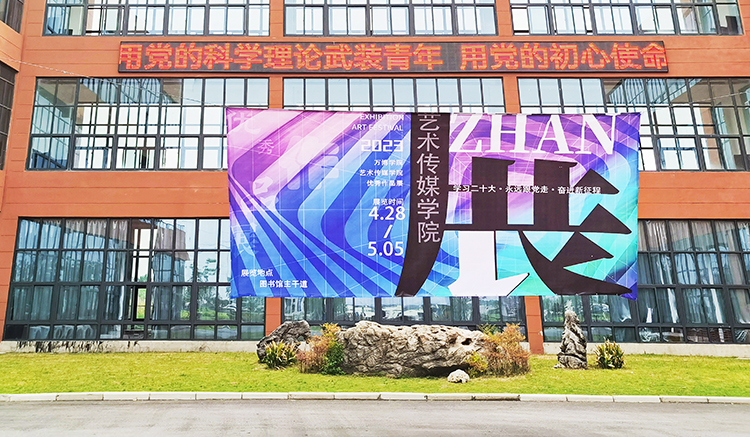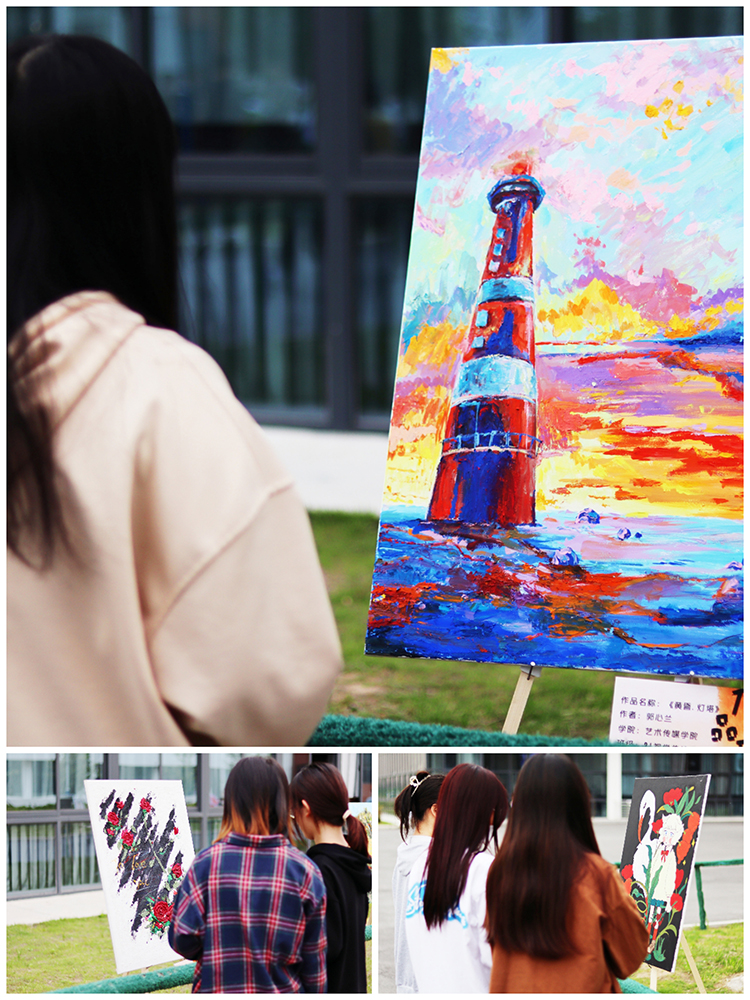 为全面推进习近平新时代中国特色社会主义思想进教材、进课堂、进头脑,贯彻落实党的二十大精神,提高大学生的审美情趣与艺术修养,4月28日至5月5日期间,学校在校图书馆广场举办以“学习二十大 永远跟党走 奋进新征程”为主题的优秀作品展。本次展览由艺术传媒学院承办。