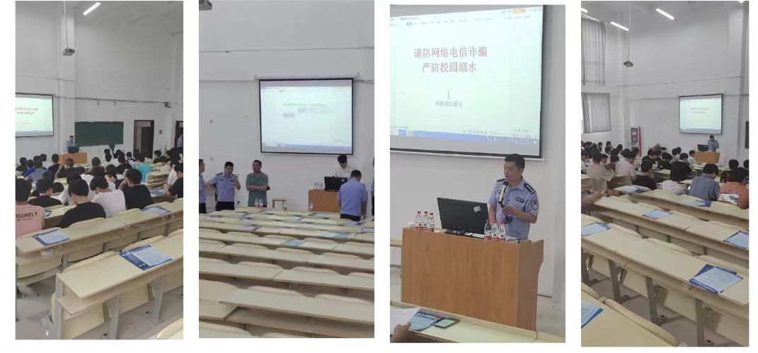 为进一步提升在校大学生的安全意识,5月16日下午,学校邀请寿县公安局新桥派出所周庆伟教导员进校开展“防诈骗、防溺水”主题安全教育讲座,新桥派出所刘新田警长等多位警官莅临现场。