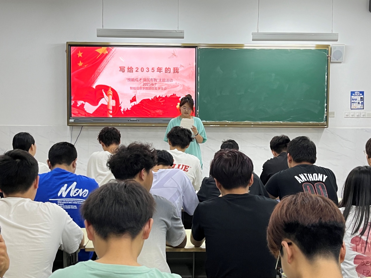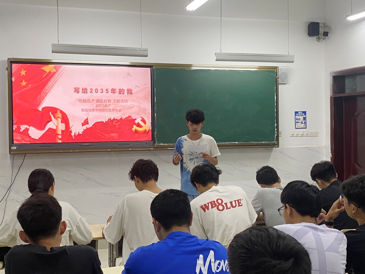 为深入学习贯彻党的二十大精神,引导学生结合所学专业展望美好前景,明确努力方向,树立远大理想。根据省教育厅关于开展“技能成才 强国有我”系列教育活动精神,智能信息学院团总支学生会于6月7日晚在1305教室开展“写给2035年的我”主题演讲活动。