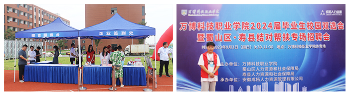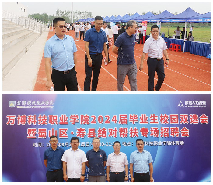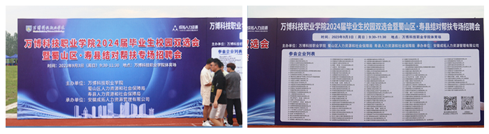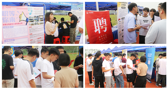 为拓宽毕业生就业渠道,帮助毕业生选上岗、选好岗,经学校与蜀山区人力资源与社会保障局、寿县人力资源与社会保障局等部门协调,9月3日,学校在运动场举办2024届毕业生校园双选会暨蜀山区——寿县结对帮扶专场招聘会。参加本次招聘企业达到140余家,提供就业岗位数3600余个,涵盖土木工程、互联网、新能源汽车、室内设计、电子商务等行业,约有1000多名学生现场参与招聘。