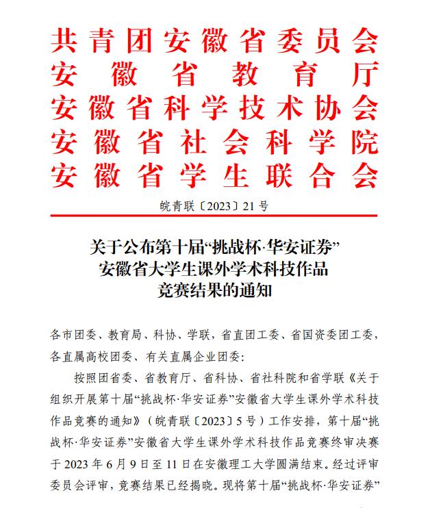 BEAT365在第十届“挑战杯·华安证券”安徽省大学生课外学术科技作品竞赛中,两支队伍获得“三等奖”。