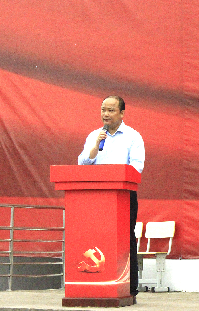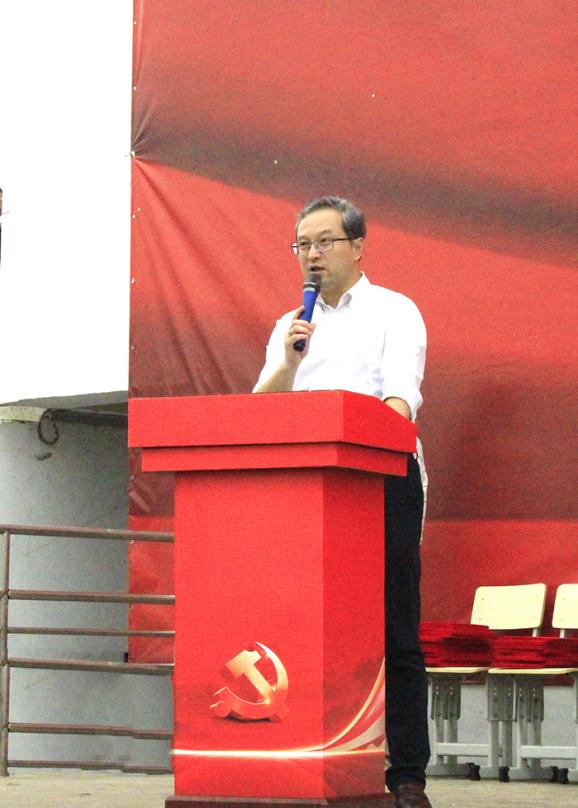 张进代表学校向新同学的到来表示热烈欢迎和诚挚的问候,向全体教官们表示衷心感谢,向全体师生致以节日问候。张进对新生提出希望:一是保持军训良好品德和作风,做“四有”新人;二是培养创造性学习能力,艰苦奋斗,认真学习;三是保持理想满怀的奋斗姿态,保持砥砺前行的奋进姿态,让青春在实现复兴梦、中国梦中绽放异彩。