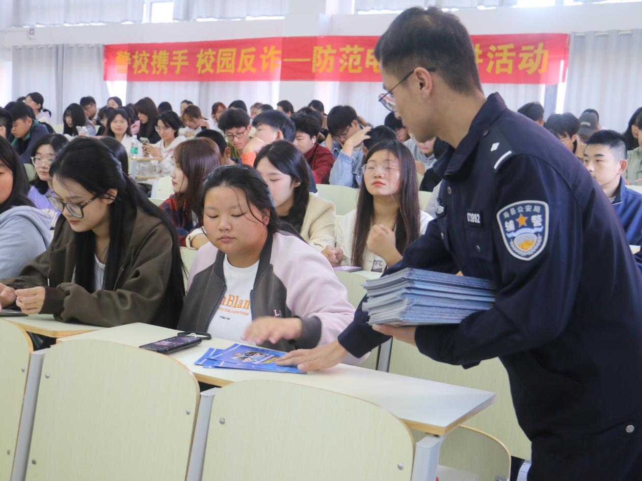 吴娟警官通过丰富的图片、文字以案释法,深入浅出地为同学们讲解了不法分子常用的诈骗手法和作案特点,加深大家对反诈知识的了解。宣讲中,她对发案率较高的“虚假游戏交易诈骗”、“冒充老师、熟人诈骗”等学生群体中易发生电信诈骗形式进行深入剖析,引导同学们识别和防范电信诈骗的方法,强调远离电信网络诈骗要做到“未知链接不点击、陌生来电不轻信、个人信息不透露、转账汇款多核实”,并向同学们发放反电诈宣传单页,引导学生们积极安装“国家反诈中心”APP。与此同时,在各教室利用腾讯会议参与观看的师生与宣讲现场进行积极讨论互动,气氛热烈,反诈宣传活动取得了良好效果。大家纷纷表示不仅提升了识别诈骗手段的能力以及意识,今后还要当好“宣传员”,提醒身边人不要上当受骗。