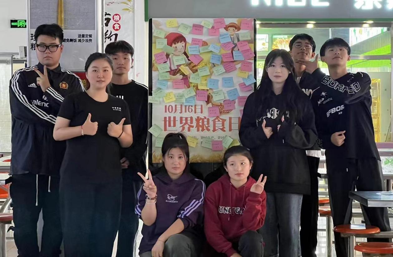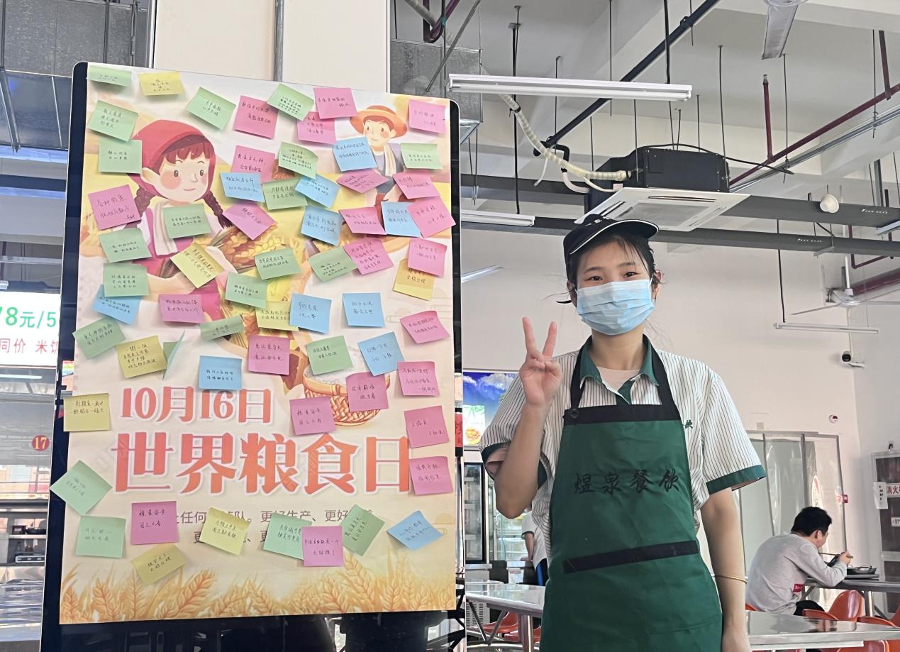 活动现场,工作人员热情地向同学们讲解“世界粮食日”的内容及意义,倡导同学们树立“节约粮食光荣,浪费粮食可耻”的观念。同学们纷纷在便利贴上写下美好寄语并签下自己的名字粘贴在宣传海报上,表示将会自愿、自觉参与节约粮食的行动中去,自觉从今天做起,从自身做起,节约每一粒粮食,抵制和反对浪费粮食的行为,养成勤俭节约的良好风尚。由侯文超同学改编,杨士庆和侯文超同学共同演唱的歌曲《稻香》,为“世界粮食日”宣传活动献上浓墨重彩的一笔,呼吁同学们提高节约粮食意识,尊重农民劳动成果,践行光盘行动。