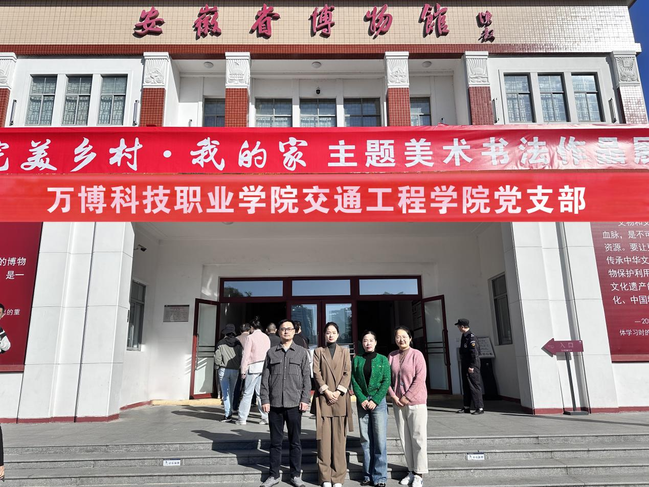 为深入学习贯彻习近平文化思想和习近平总书记在文化传承发展座谈会上的重要讲话精神,以及关于“三农”工作的重要论述和关于安徽工作的重要讲话重要指示精神,同时,为推动学校党建理论研究和实践创新,积极探索“一支部一品”党建文化建设的路径和机制,11月7日,交通工程学院党支部书记杨晓芸、组织委员徐亚运、团总支书记周璐璐、学工助理史焜等党员同志参观了由我省多家省直机关单位联合主办的“皖美乡村·我的家”主题美术书法作品展。