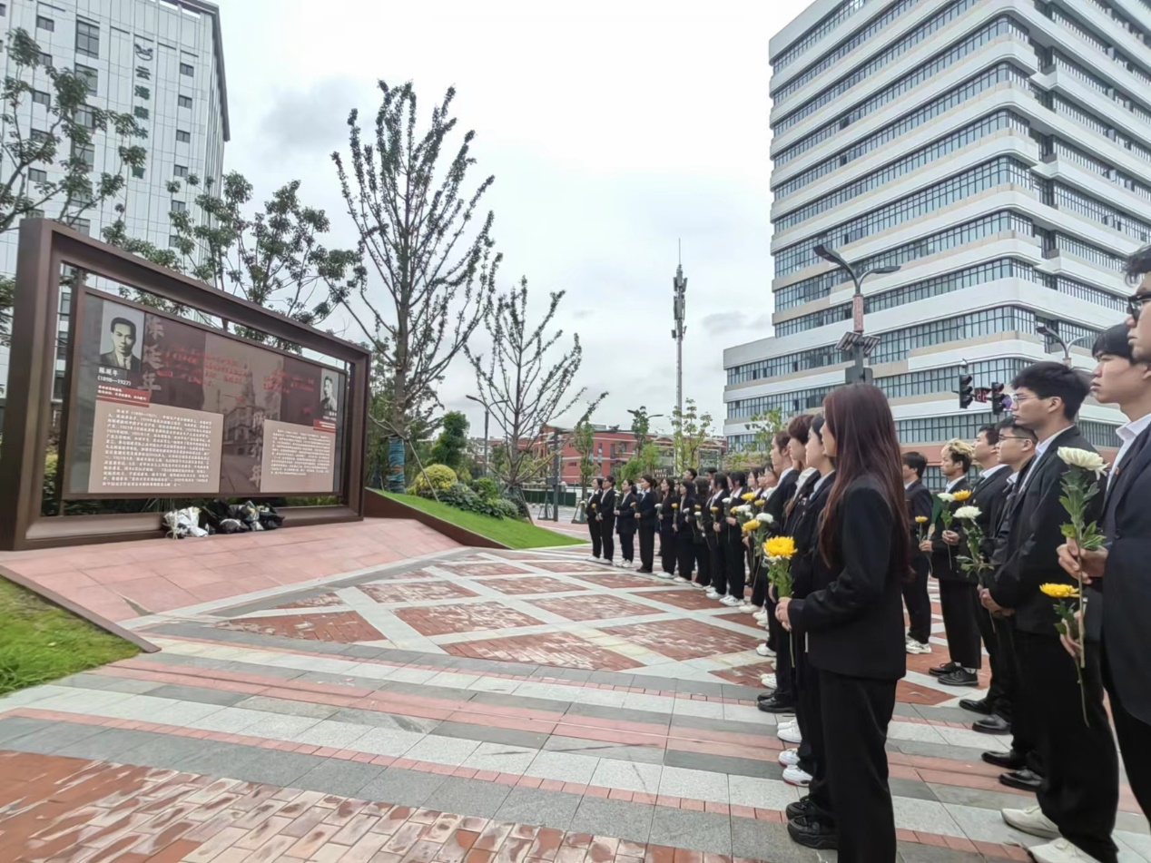 随后,大家来到“延乔版画”景墙,为陈延年、陈乔年烈士献花,致敬缅怀。去时少年身,归来烈士魂,他们把青春献给祖国的英雄壮举让我们永远铭记。