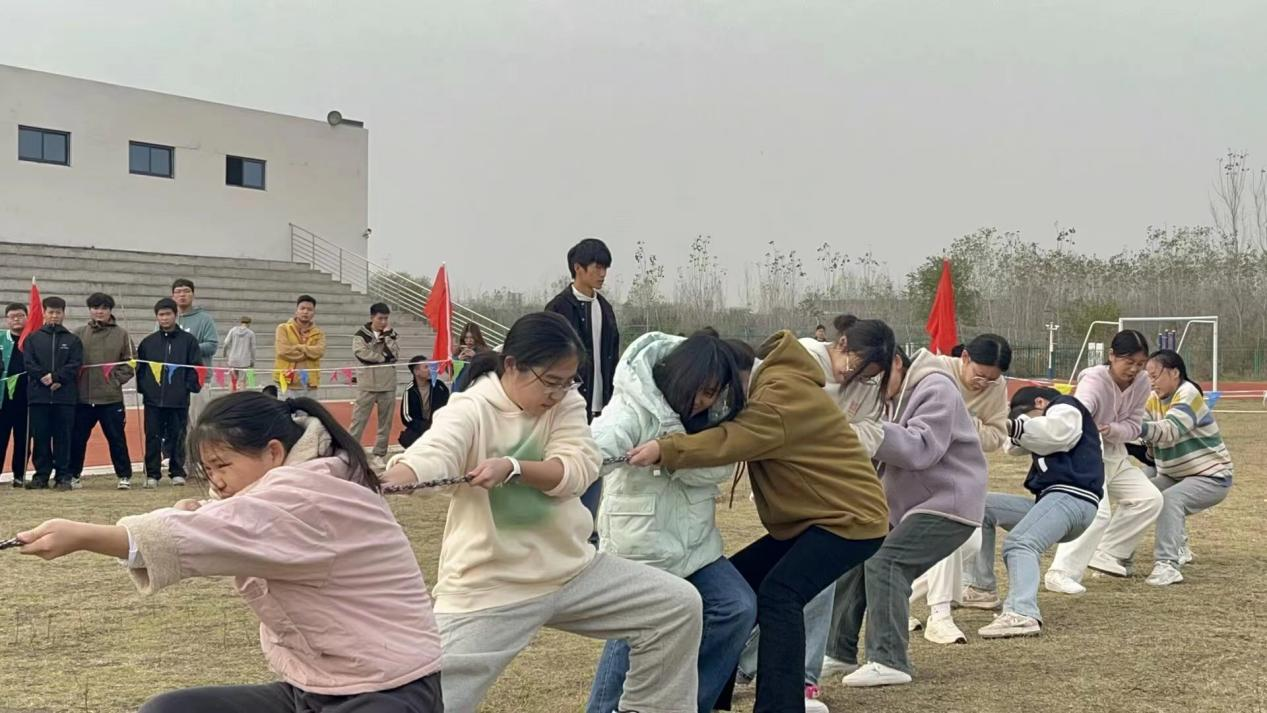 为鼓励广大学生积极参加体育锻炼,强化学生的集体意识和团队精神,营造积极向上、团结协作的校园文化氛围。校团委于11月16日在操场举办主题为“凝心聚力 ‘绳’彩飞扬”的拔河比赛。
