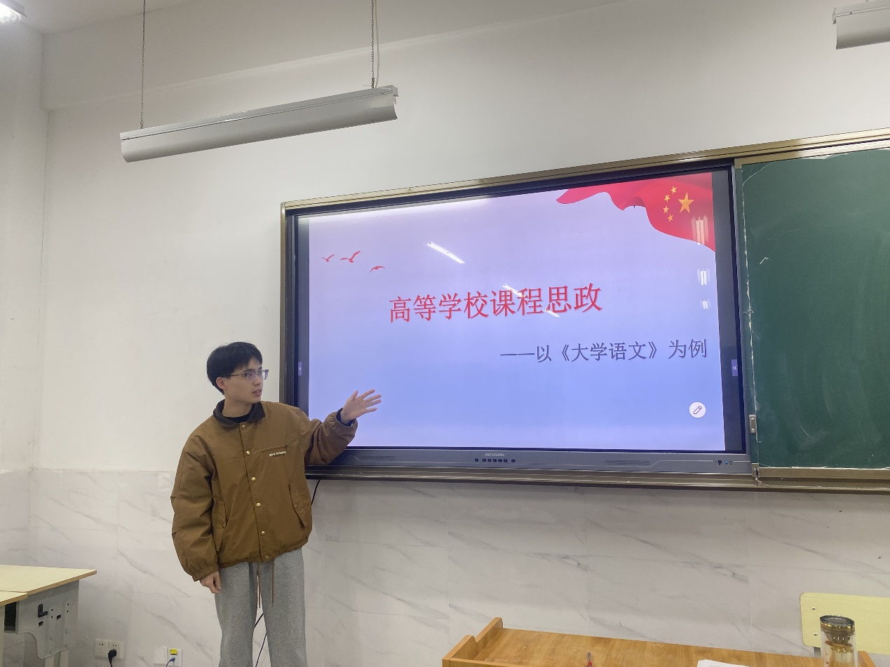 随后,夏萍老师和李想老师相继分享了“课程思政”建设经验,夏萍老师围绕公共英语课程教学中怎样融入课程思政,如何设计教学主题、如何体现英语课程中的育人元素,如何提高课程思政的教学实效等方面展开了深入讨论。李想老师围绕在大学语文教学中“将哪些思政元素融入课程”、“以什么形式融入”等问题展开,提出自己的意见和建议。
