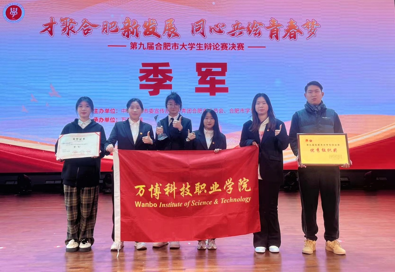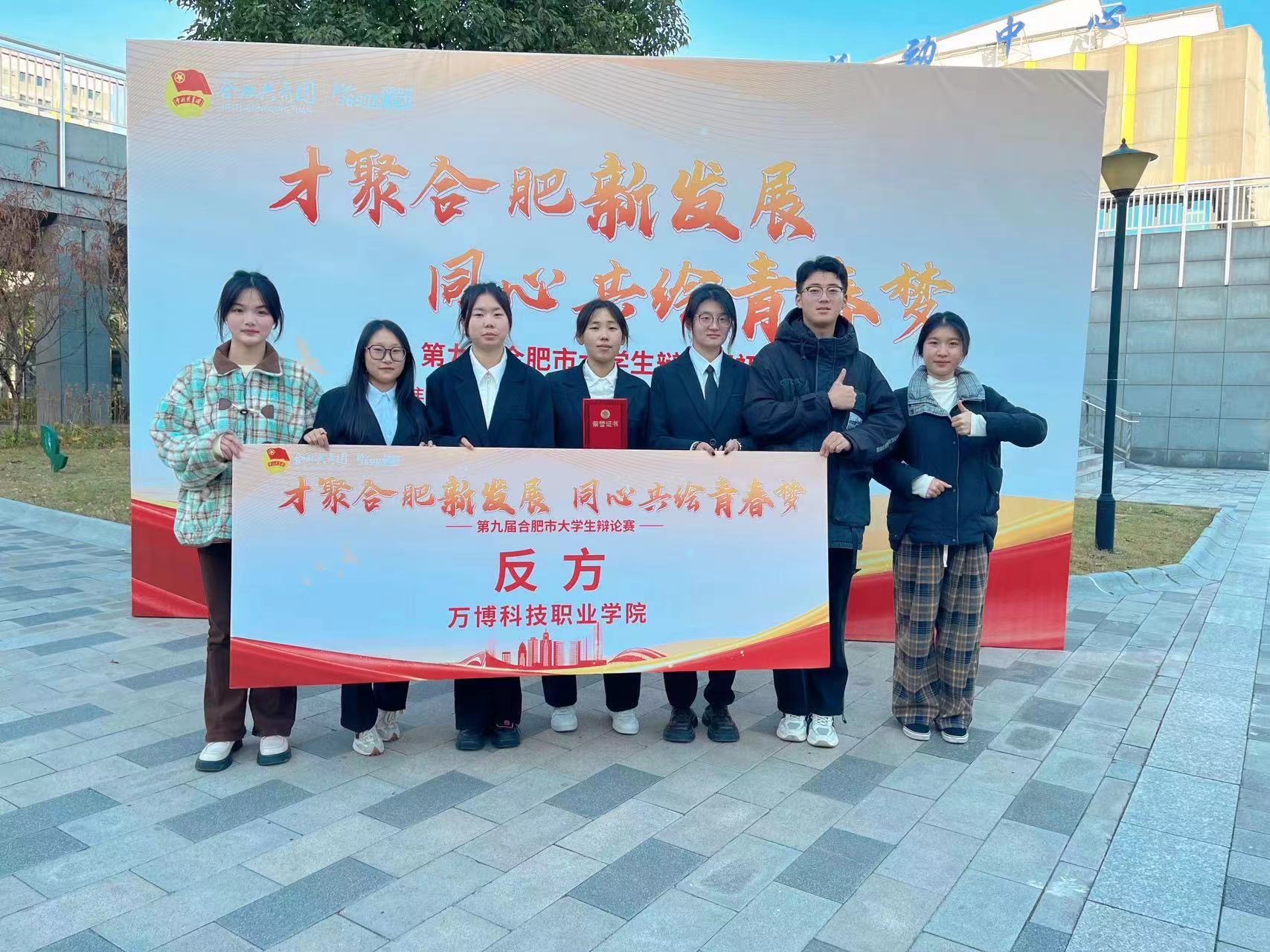 近日,由中共合肥市委宣传部、共青团合肥市委员会、合肥市学生联合会主办的“才聚合肥新发展 同心共绘青春梦”第九届合肥市大学生辩论赛圆满落幕。BEAT365孟祥达、张一辰、汪丽婷、郭佳静、李子航、夏怡琳组队参赛。经过初赛、复赛、半决赛的激烈角逐,BEAT365辩论队从31支高校代表队中脱颖而出,最终荣获高职组季军,一辩孟祥达在初赛及复赛中表现突出,两场比赛中均荣获“最佳辩手”称号,BEAT365荣获“优秀组织奖”。12月23日,大赛在合肥市青少年活动中心隆重举行决赛和颁奖仪式,BEAT365团委老师及辩论队员参加。