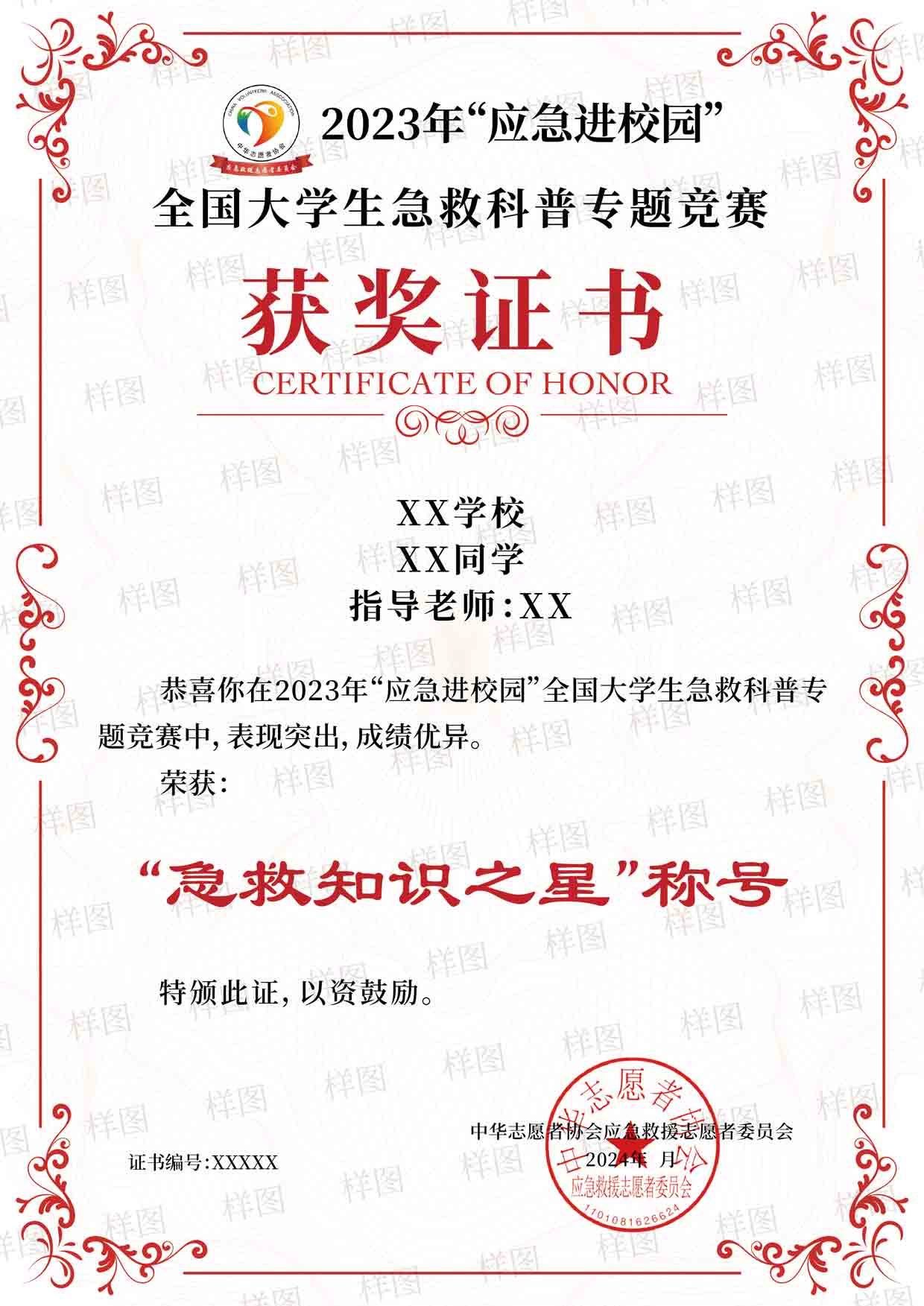 分享50人参与竞赛答题,可获得《卓越志愿者证书》—免费颁发纸质证书、免费颁发电子证书