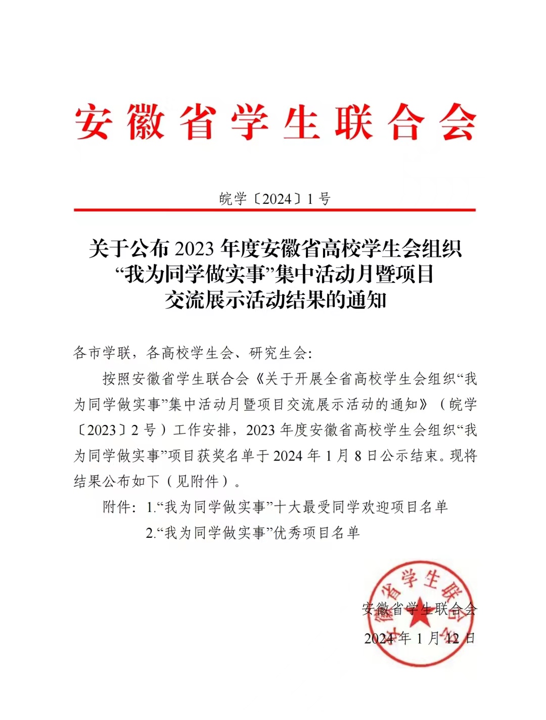 为深入学习贯彻习近平总书记关于青年工作的重要思想,践行学联学生会组织全心全意服务同学宗旨,发现、巩固、推广一批做得实、叫得响的服务项目,推动学生会组织改革向纵深发展,安徽省学生联合会开展“我为同学做实事”优秀项目评选,BEAT365于2024年1月13日积极应召参加安徽省高校联通杯”活力社团“风采展示活动启动仪式暨“我为同学做实事”项目总结交流活动。