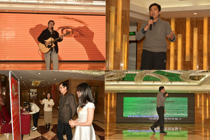 智能新信息学院陆梦圆的吉他弹唱《别怕变老》深情演唱,基础部张博丞、张金华、谢京辉,何俊杰带来的相声《龙年大吉》让在场观众捧腹大笑。音乐教育学院沈春雷院长的一首男声独唱《父亲的草原母亲的河》中,充满了对家乡的眷恋和对父母的敬爱之情。音乐教育学院胡明哲女声独唱《我爱你中国》,歌声激昂,深情表达了对祖国的热爱之情。