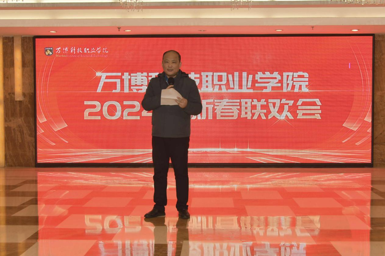 张进首先登台致辞,为全体教职工送去新年祝福。他表示,举办联欢会的目的既是为庆祝龙年新春的到来,也是为全体教职工提供一个展示才艺、增进交流的平台,他希望大家能够尽情享受这个充满欢乐的夜晚,同时也要珍惜彼此间的友谊,共同努力,为学校的未来奋斗。