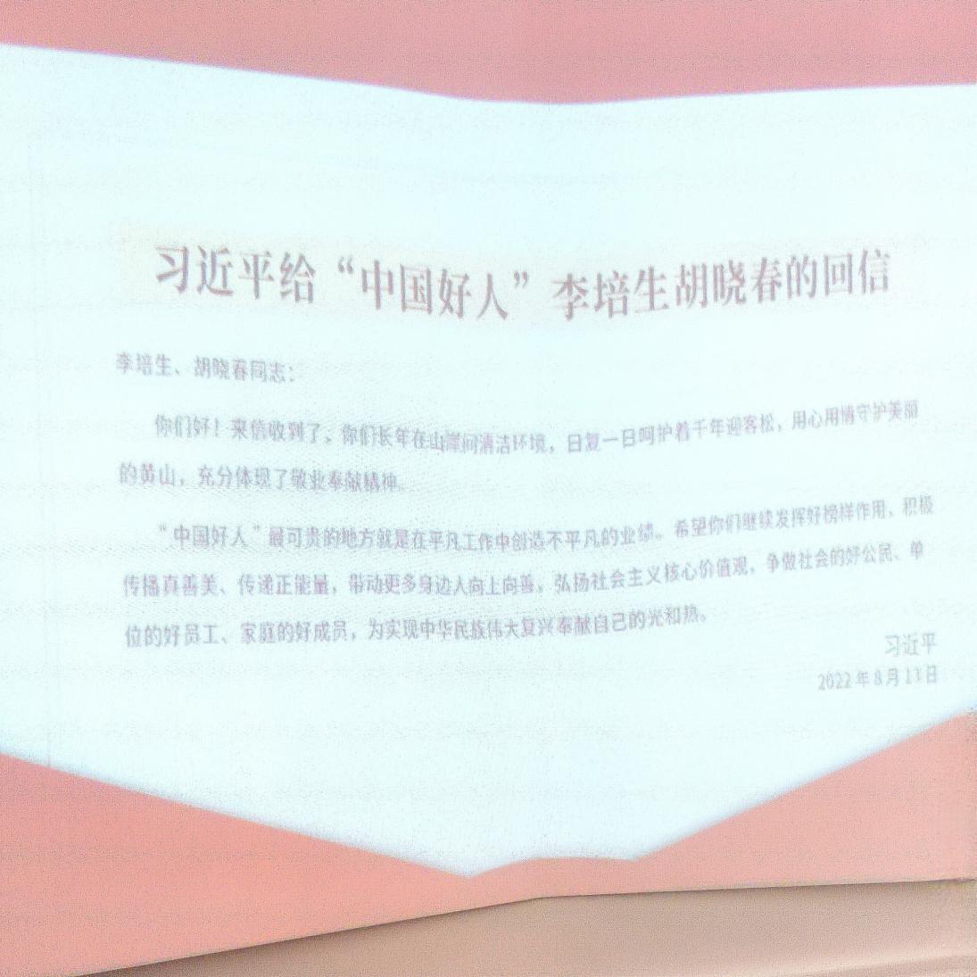 特别在参观“中国好人事迹墙”时,其中“中国好人”李培生、胡晓春长期坚守在黄山之巅,用心呵护一草一木引人注目,他们在平凡中显伟大,在坚守中见境界。在习近平总书记给“中国好人”李培生、胡晓春的回信中,“在平凡工作中创造不平凡的业绩”令实践队员们动容,纷纷表示要学习他们的敬业精神,奉献自己的光和热。