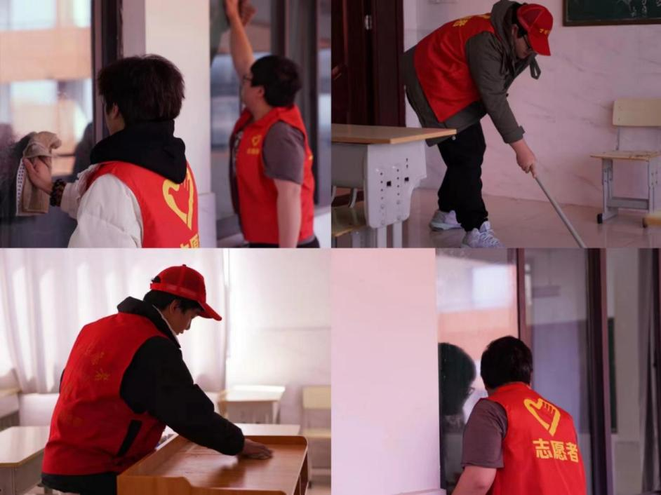 活动过程中,志愿者们分工明确、相互配合,他们手持扫帚、拖把、抹布等工具,清洁桌面和地板,摆放桌椅,擦拭黑板和电脑主机等,认真清扫校园每一个角落,不放过任何一处灰尘。经过他们的辛勤劳动,校园变得更加干净整洁、焕然一新。在活动过程中同学们积极参与,不怕脏不怕累,以实际行动践行雷锋精神。