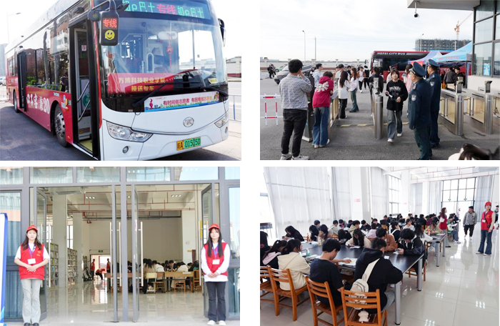 开考当天,学校各部门分工协作,紧密配合,保障考试工作顺利展开:招就办统一协调考生有序入校;教务部为考务组织与协调尽职尽责;实验与网络管理中心为上机考试实时提供技术保障;保卫部全天巡查,确保校园秩序与安全;后勤保障部、物业公司穿梭在校园各处,维护校园环境整洁;学生食堂为考生们准备了丰富的餐饮;校团委组织学生志愿者在合肥客运西站提供免费乘车。同时,咨询点、考场外、校园里,到处都能看到志愿者的身影。他们耐心的引导学生,为学生答疑解惑。