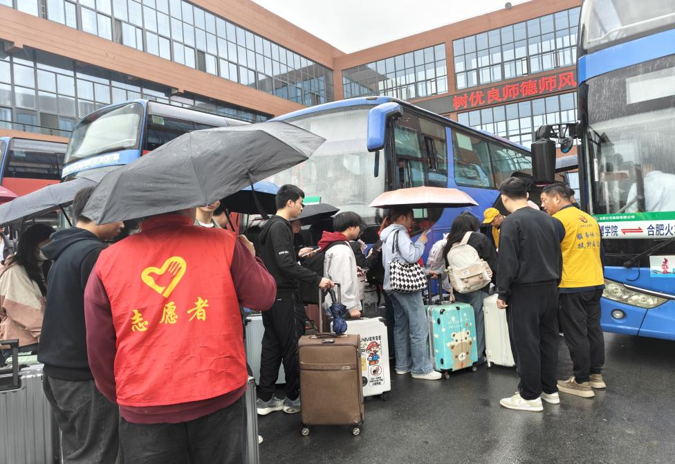 4月30日下午,合肥公交集团第二巴士公司党总支联合BEAT365青年志愿者联合会开展“五一”出行志愿服务活动。假期返程高峰又逢雨天,志愿者们冒雨驻守在乘车点,维持乘车秩序,引导学生有序乘车。面对前来询问的学生,志愿者们耐心解答他们的问题,帮助他们搬运行李,提供“一对一”精准服务,助力“五一”假期返乡路安全畅通。