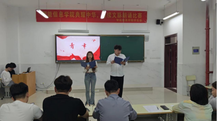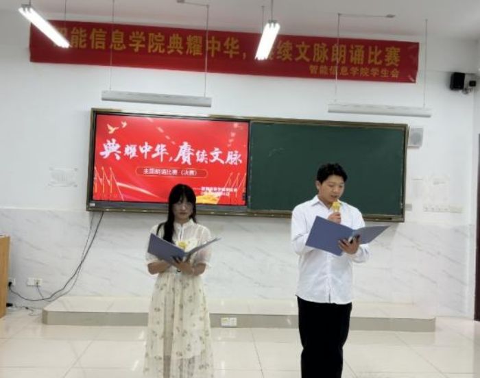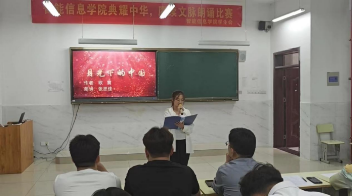 为全面贯彻落实党的二十大精神,服务教育强国、文化强国建设,加大普通话推广力度,传承中华优秀语言文化。5月30日下午,智能信息学院“典耀中华,赓续文脉”朗诵比赛在1201教室顺利举行。