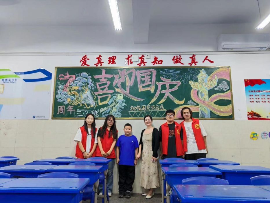 9月29日,国庆佳节来临之际,音乐教育学院师生积极行动,前往合肥市五十中学校寿县分校,开展绘制《喜迎国庆,爱我中华》主题黑板报活动。本次活动由学院辅导员蔡娜娜老师带队,参与人员为音乐教育学院部分学生及五十中学校寿县分校的师生。