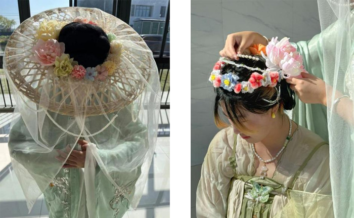 在汉服设计自主创作环节,共收到10幅设计作品,经过专业教师评审,最终张金丽团队作品《宫乐图花冠》;赵永婷团队作品《唐锦纱帷》;芮心怡团队作品《花仪冠》和陈家诚团队作品《古韵云冠》分获一、二、三等奖。