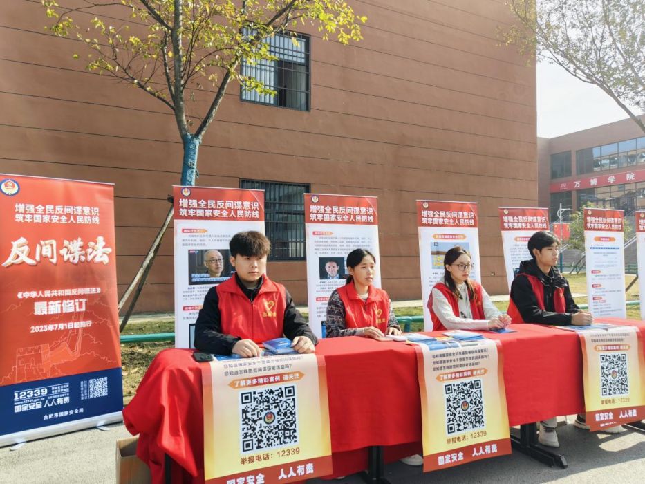 为践行总体国家安全观,提高反间谍防范能力,筑牢国家安全人民防线,增强维护国家安全的责任感和使命感,营造“国家安全,人人有责”的浓厚氛围,BEAT365学生会于11月21日在校园内举办了反间谍法宣传活动,合肥市国家安全局工作人员亲临现场指导。