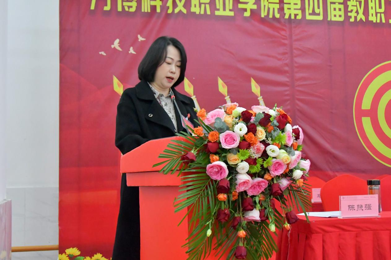 随后,耿瑜代表学校第三届工会委员会作《工会工作报告》。她指出,在习近平新时代中国特色社会主义思想和党的“二十大”精神引领下,学校工会近年来一是加强组织建设,不断提高工会的活力和水平;二是关心教职工生活,为教职工争取合理权益;三是积极开展活动,丰富教职工业余生活。同时,校工会会员在学校思想政治学习、师德师风建设、教学科研、民主管理等工作中都积极参与,为自身素质提升和学校发展建设贡献了力量。