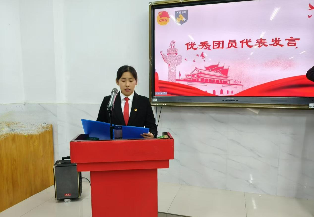 优秀团员代表孟祥达同学分享了在共青团组织中的成长经历,鼓励新团员在学习中提升自我,在社会实践中积极锻炼综合能力在团组织中磨砺意志,努力成为社会主义建设者和接班人。