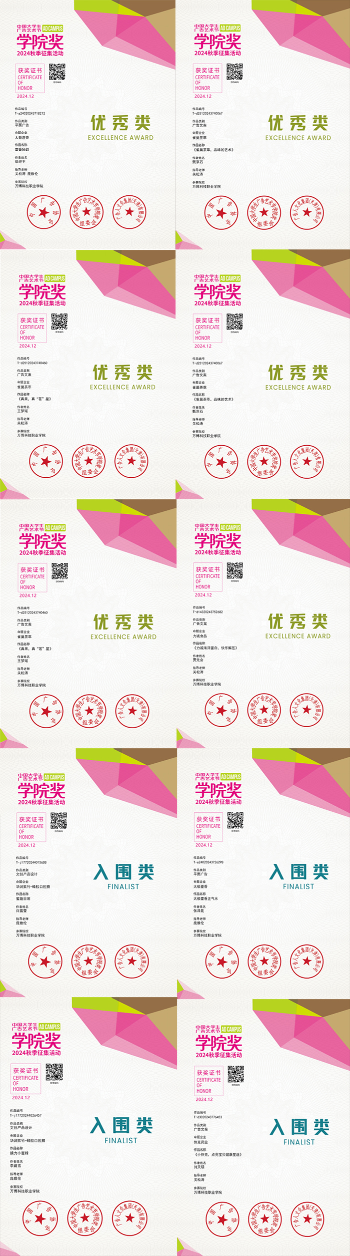 2024年12月30日,中国大学生广告艺术节•学院奖2024秋季创意盛典在北京落下帷幕。中国大学生广告艺术节学院奖是全国性的大学生广告专业奖项,旨在通过命题式创意比赛,为相关专业学生提供展示创意才华的平台。该项赛事,BEAT365师生已经连续参赛10年,为大赛累计共创作了近2万件参赛作品。多年来BEAT365学生的优异表现不仅是对参赛学生个人才能的认可,更是对广告艺术设计专业教育质量的肯定。