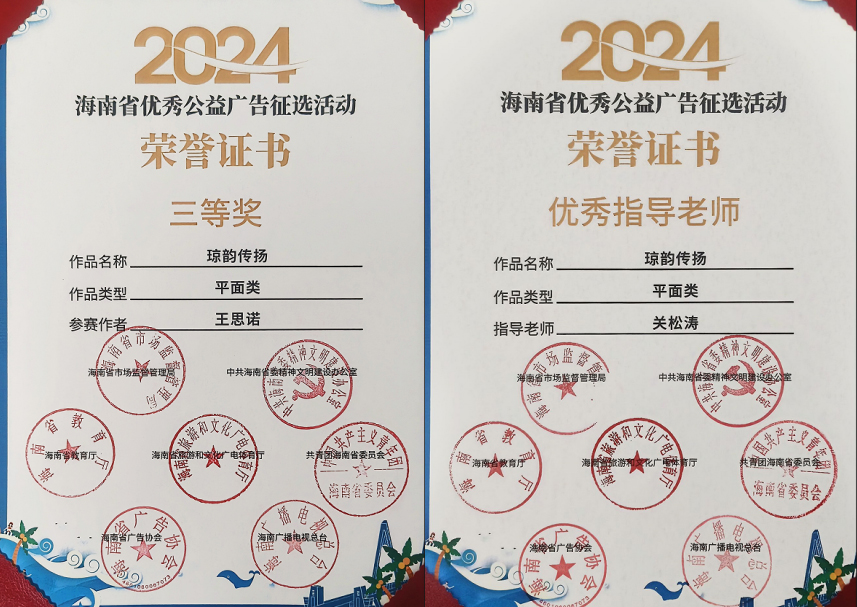 2024年12月31日,海南省优秀公益广告作品征集推选活动表彰暨颁奖仪式圆满结束。2024年为深入贯彻党的二十大和二十届三中全会精神,展现海南自贸港新风尚,以创意凝聚善意,弘扬时代新风正能量,海南省市场监管局联合省委文明办、省教育厅、省旅文厅、广播电视总台和省广告协会组织开展了海南省优秀公益广告作品征集推选活动。本次活动共收到作品1526件,经专业评审、主办单位会审,并经社会公示,最终确定获奖作品42件,其中等级奖18件,优秀奖24件,等级奖获奖率为1.18%。