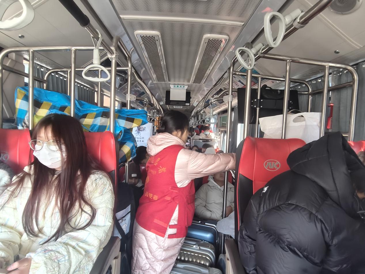 9日当天,学校督导专员、党委书记鲍习生在现场慰问全体志愿者,了解返乡学子还有哪些实际困难。他叮嘱同学们注意假期安全,祝福大家度过一个温暖祥和的新春佳节。虽然当天气温较低,但志愿者们情绪高昂,干劲十足,身披的“红马甲”俨然成为寒冬时节温暖人心的一簇簇火焰。截至1月12日,共发出专线巴士31辆,服务学生人数近2000人。