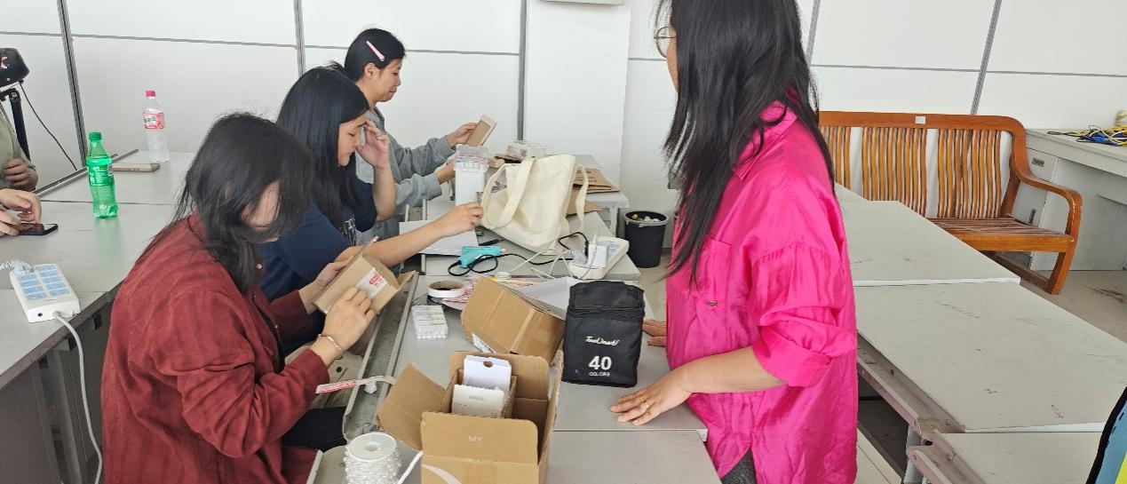 活动结束后,教研室组织开展了作品展示与教学反馈会。全体学生将成果集中布展于实训室展区,并进行现场讲解与交流汇报。教师团队结合学生作品的创意程度、技艺完成度、环保意识与文化内涵四个方面进行了细致点评与打分。