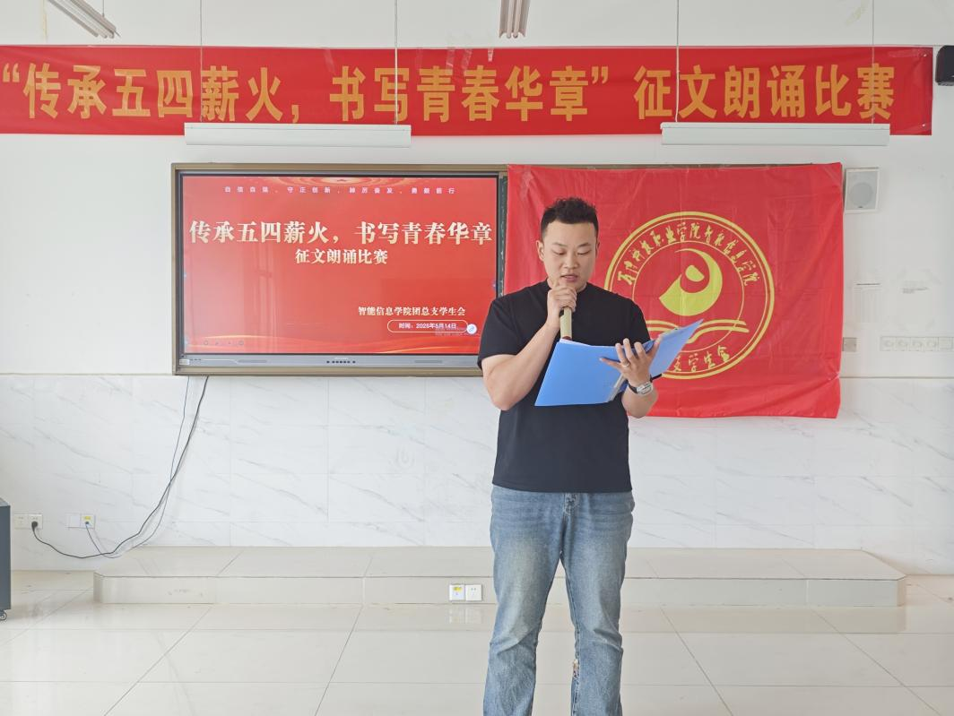 为赓续五四精神血脉,厚植青年学子爱国情怀,5月14日,智能信息学院学生会在1201教室成功举办“传承五四薪火,书写青春华章”征文朗诵比赛,以文抒志、以声传情,奏响青春奋进强音。